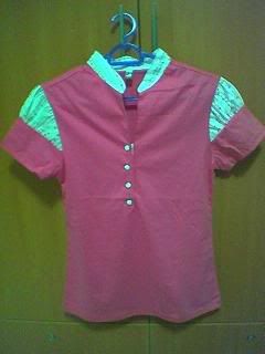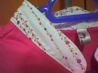 Ta-da !! Its hot pink wiv flower designs on the collar & sleeves !! at 1st i don quite like it. but laopo said it will look gr8 on me. i gaf it a try. & it din turn out bad. =)
