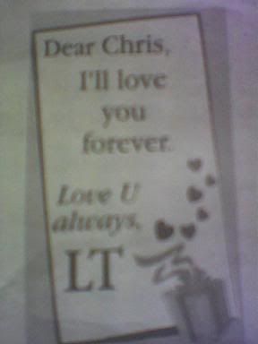 as fer his present ar.. hmph, still in the process of searching.. i knoe im last min le.. but i juz wanna get him the most best gift ! so i told him his present gotta wait ! Heez.. will be real broke this mth.. todae's didi's burf-dae.. cuming fri will be my jiejie's burf-dae.. cuming 28th will be my meimei's burf-dae.. goshh.. i still gotta shopp fer my CNY clothes !! awww... its time to save fer a rainy dae !! * hiakz *