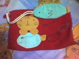 cat-lying-on-big-fish pencil case .. but coz the material of this pencil case is too soft, dats y i seldom use it le.. im afraid my stationeries would poke a hole on it ..