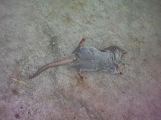 Thou i loathe pests alot.. i still pity this rat above.. its dead.. i found it lying on the floor beside a multi-storey carpark next to my house.. i was pacing myself to school in the morn ard 8++ am den.. Ya, everyone goes thru life & death.. everyone.. every animal.. every tree.. every pest even.. in fact all living things goes thru the process of life & death.. but wad i pity most abt this rat is.. i still found it lying beside the carpark at 10++ pm.. onli dat now its been relocated to a dist of half a metre the most from the position i saw it in the morn.. i guessed the dead rat muz have been kicked.. poor rat.. oredi dead le still haf to go thru this.. wads worse is the presence of cockroaches & ants, ferociously tearing apart the rat's skin & greedily munching the rat's meat.. IF the cleaner/sweeper for my estate has been doing his job well by clearing the rat off, the poor rat woulf not haf been kicked & munched ! thats a total insult ! Arghh.. still, my deepest sympathy goes out to the poor rat..