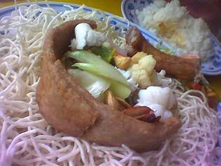 Yam Basket wiv seafood ingredients in it. Angela loves dis.