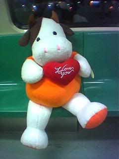 here he is, wiv his reddy heart dat says "i love u" .. haha.. juz being lame..