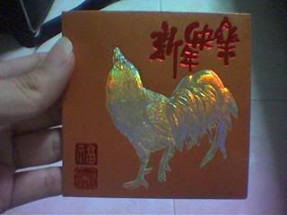 my respective siblings & my mom got one too !! even leetong got one too!! all from big big !! onli diff was the different postures of the chicken on the ang baos. mine was facing left, same goes ger ying. jun's one was facing front while ah li's one was facing rite. leetong's one was not facing anywhere but on the verge of flying. haha. mom's one is big. coz she is mom!! hehe. THANKS BIGBIG !!!